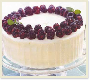Vanilla Layered Cake raspberries, buttercream frosting, white chocolate shavings
